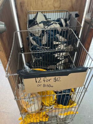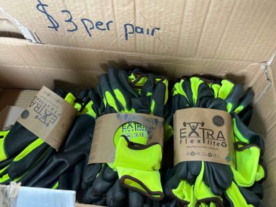 Blue and yellow gloves $1.50 per pair or 12 pairs for $12.00. Will sell in whole boxes containing 120 pairs.