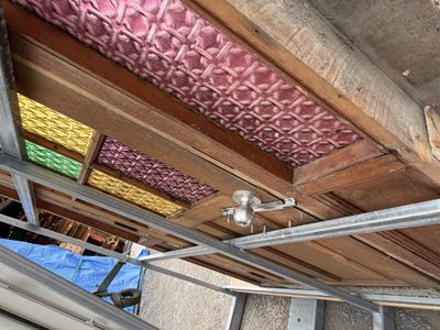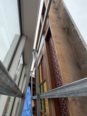Beautiful stained opaque glass villa door, recently removed and ready for a new home.