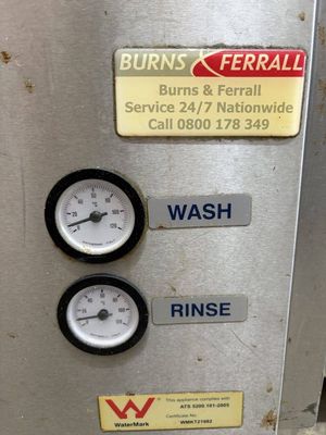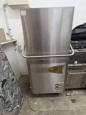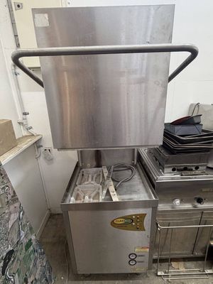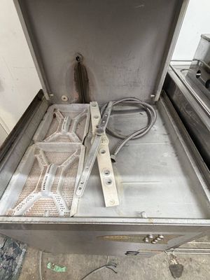Commercial dishwasher removed from a working restaurant setup.